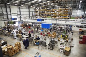 High angle view over the factory floor and assembly process in a bicycle factory.,Cycle Factory,England - CV. Mandiri Teknik